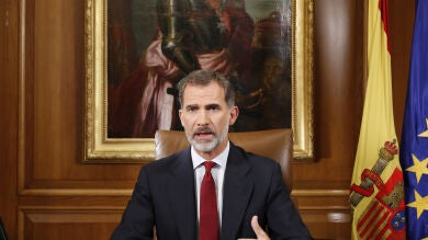 Seis minutos duró el mensaje que se emitió sobre las 21.00 horas, al comienzo de los principales informativos de los distintos canales de televisión. Fue una declaración transcrita en cuatro folios que don Felipe grabó con el procedimiento habitual que se sigue cada año para la emisión del tradicional discurso de Navidad.