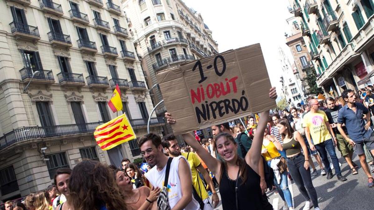 Miles de estudiantes reivindican en Barcelona el 1-O y reclaman que se haga efectivo el resultado del referéndum