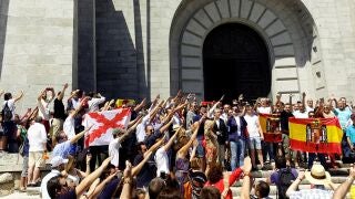 Miles de personas han acudido al Valle de los Caídos para protestar contra la intención del Gobierno de Pedro Sánchez de exhumar los restos de Francisco Franco.