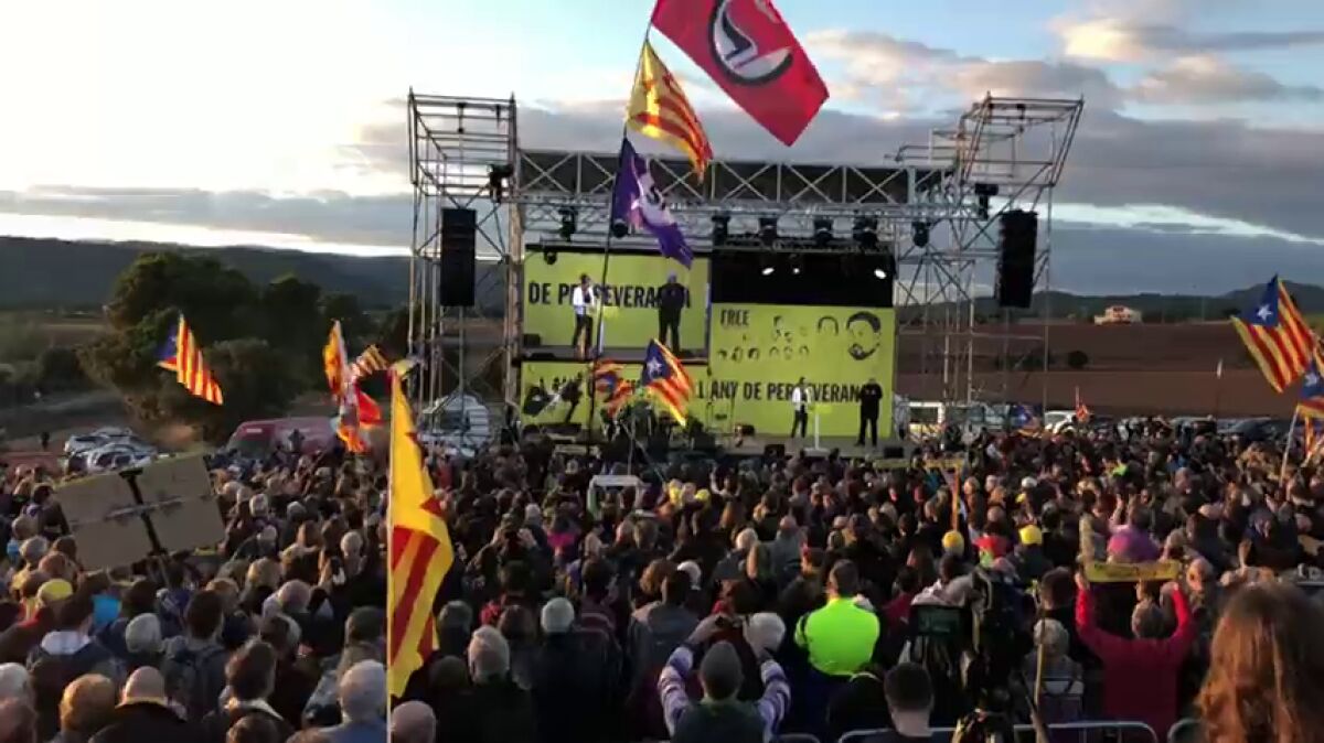 Miles de personas se concentran ante la cárcel de Lledoners para reclamar la libertad de los presos independentistas.