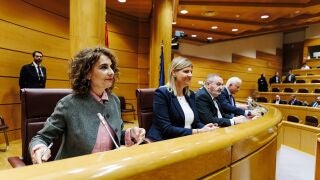 La vicepresidenta primera y ministra de Hacienda, María Jesús Montero, ha comparecido esta mañana en el Senado en la comisión de investigación por la compra de mascarillas. Su intervención se produce después de que el presunto comisionista del 'caso Koldo', Víctor de Aldama, cargara en su declaración ante el juez contra varios altos cargos del Gobierno. Pero la sesión ha sido interrumpida al tener que asistir al Congreso de los Diputados, pero a las 16:00 horas han retomado la comparecencia.