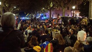 En un primer momento, los manifestantes han protagonizado un acto pacífico, no obstante, la tensión ha ido en aumento y, lo que había comenzado como una sentada, ha acabado con todas las personas de pie y con la quema de una bandera española.