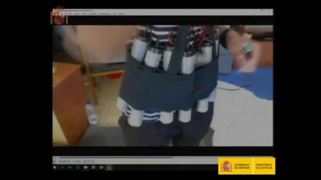 En uno de los vídeos exhibidos durante esta primera sesión de juicio, uno de ellos se prueba un chaleco con explosivos: "¿Que hace esto, que hace esto? pregunta, mientras otro joven le contesta "eso hace pum, eso hace pum, te queda bien".