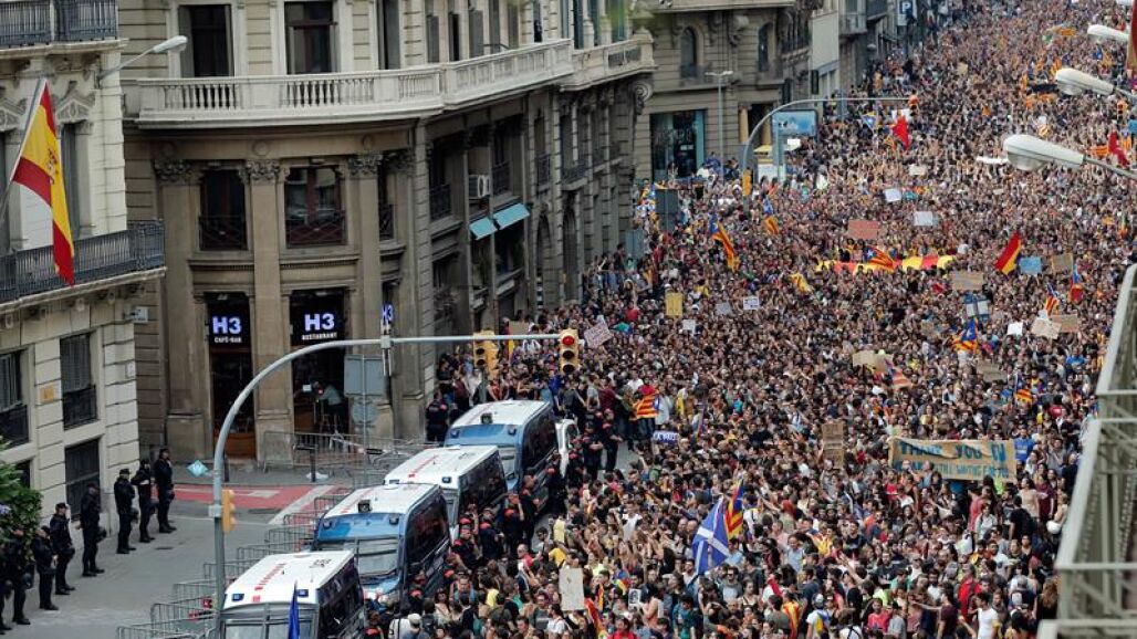 Multitudinario escrache ante la sede de la Jefatura Superior de Policía en Cataluña en protesta por la actuación del 1-O