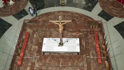 Los nostálgicos de Franco han asistido a la misa y le han mostrado su respeto de rodillas en el lugar en el que estaba su tumba en el Valle de los Caídos a pesar de que los restos ya no están allí.