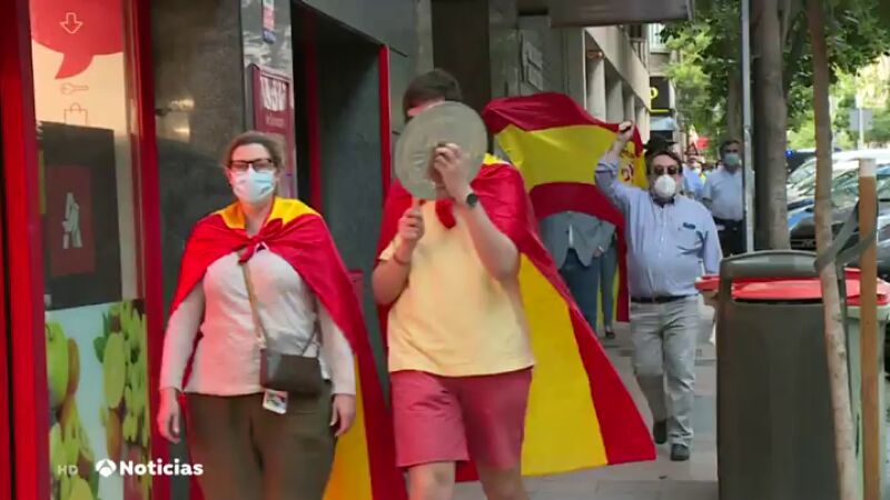 Decenas de personas han vuelto a protestar en Madrid con cacerolas contra la gestión del Gobierno de la crisis del coronavirus.