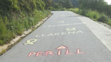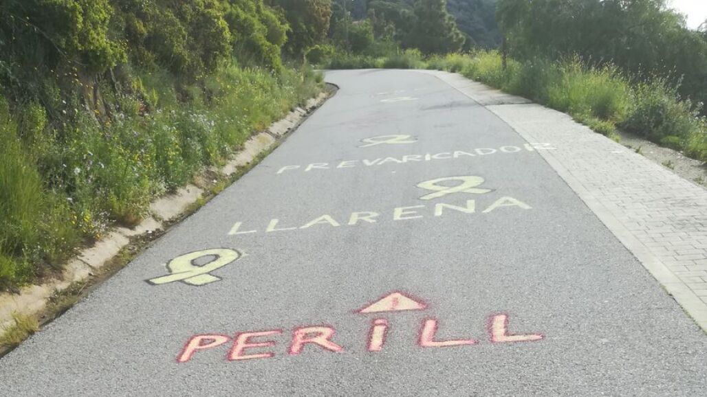 En esas pintadas, sobre el asfalto y entre lazos amarillos y signos de "peligro", se acusa al magistrado del Tribunal Supremo Pablo Llarena de "prevaricador".