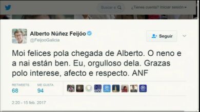 El líder del PPdeG y padre primerizo ha escrito: "Muy felices por la llegada de Alberto. El niño y la madre están bien. Yo, orgulloso de ella. Gracias por el interés, afecto y respeto", un mensaje que firma con sus iniciales, 'ANF'.