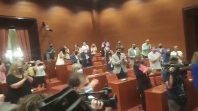 Junqueras ha llegado al Parlamento sobre las 12:15 horas, más tarde ha entrado en la sala de grupos junto con Raul Romeva, también indultado, donde han sido recibido entre aplausos y ovaciones por sus compañeros de su partido. En el vídeo puede ver cómo ha sido eso aplausos hacia Junqueras.