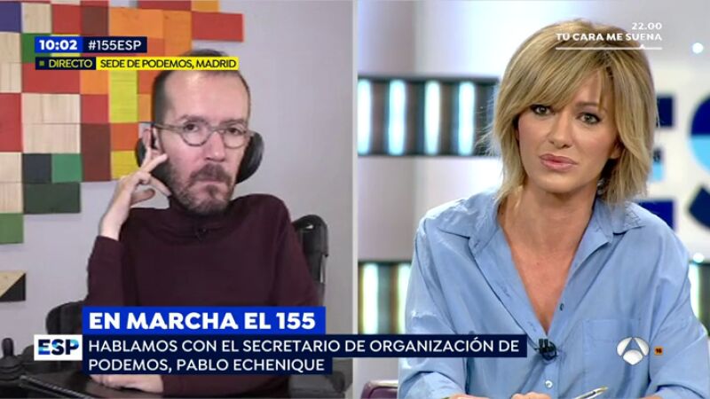Íñigo Urkullu recordaba este jueves que no ha habido DUI, y por tanto, no debe aplicarse en ningún caso el 155, Echenique dice que "es verdad que es evidente que no se proclamó la independencia, pero también es verdad que la última carta de Puigdemont amenaza con una DUI, algo que sería ilegítimo porque el 1-O no fue un referéndum con garantías y no se puede declarar la independencia de Cataluña en esos términos".