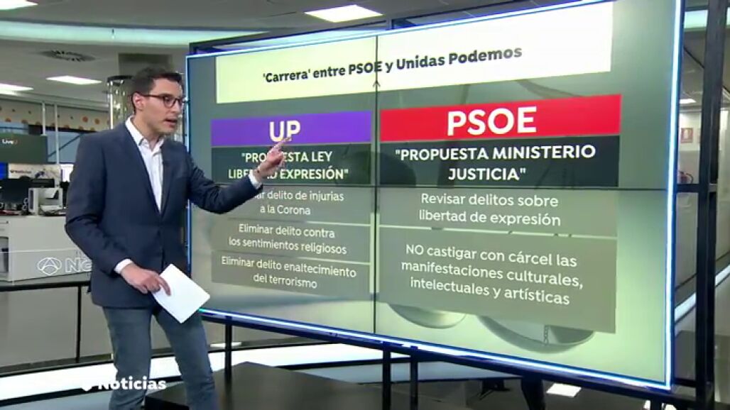 Unidas Podemos dice que avisaron al PSOE de que hoy registrarían la propuesta para eliminar el delito de injurias a la corona o enaltecimiento del terrorismo imputados al rapero Pablo Hasel. Ya habían convocado rueda de prensa. Pero el PSOE lo niega. Y por sorpresa, ayer por la noche se adelantan: anunciando que el ministerio de Justicia, del PSOE, va a revisar esos delitos: para que las "manifestaciones artísticas" no se castiguen con cárcel. Nadie en Unidas Podemos sabía nada. Porque dicen que nadie del PSOE les avisó. Otro choque interno, otra vez, por quien legisla antes.