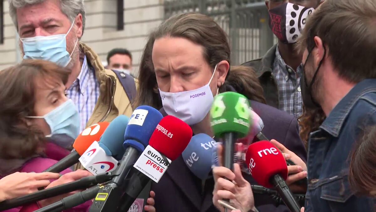 El líder de Unidas Podemos se ha dirigido a los medios a la entrada del Congreso de los Diputados. "Venimos de poner la denuncia en la comisaría".