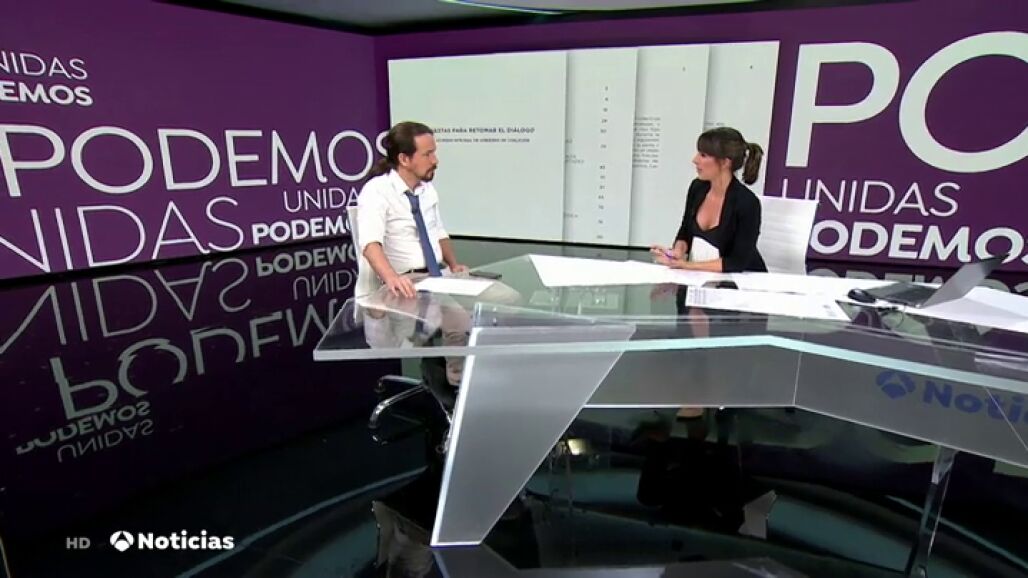 El secretario general de Unidas Podemos, Pablo Iglesias, ha visitado el plató de Antena 3 Noticias después de que este martes hayan enviado una nueva propuesta al PSOE.