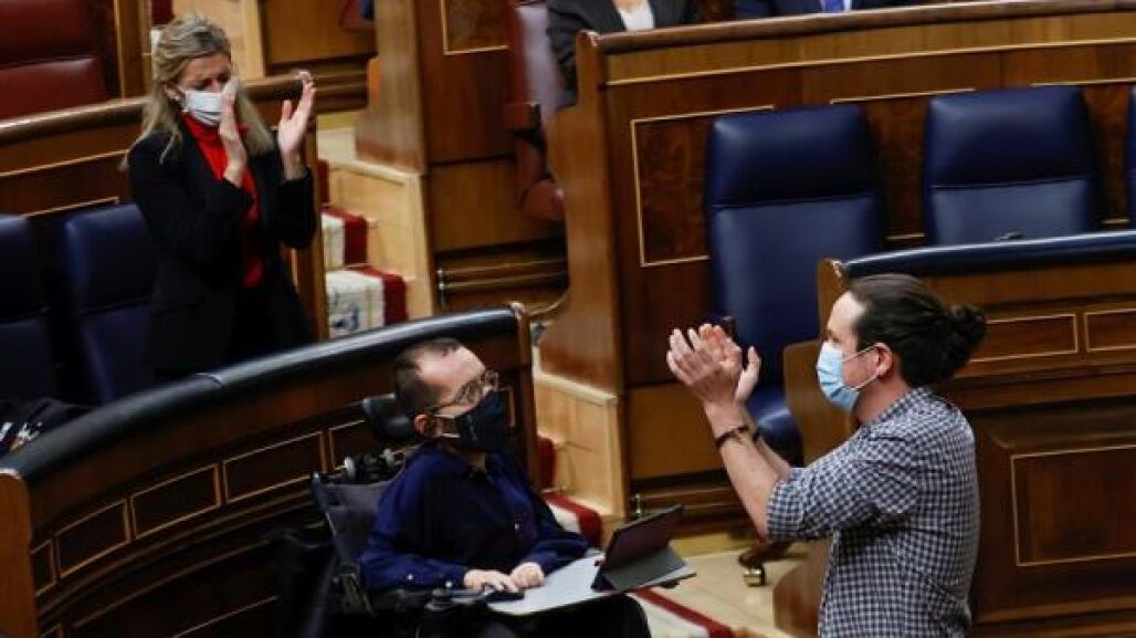 El líder de Unidas Podemos se despidió de la Cámara con palabras de reconocimiento para "esas gentes que peinan hoy canas" y que lucharon por la democracia y "contra el fascismo" durante la dictadura de Franco y lo hizo con las mismas palabras con las que hace 5 años se estrenó en el hemiciclo: "Porque fueron somos y porque somos serán" a la vez que se ha llevado el puño al corazón, para bajar del atril en medio de un extenso aplauso por parte de sus compañeros de partido, de sus socios socialistas y del resto de partidos que han apoyado la investidura de Pedro Sánchez que se han puesto en pie para aplaudir.