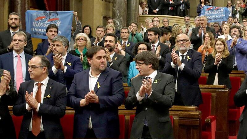 La república se declaró a través de una resolución, y este tipo de iniciativa parlamentaria se divide en dos partes: una exposición de motivos que no se vota y no tiene efectos, y otra parte dispositiva, que es la que se vota en el pleno y sí tiene efectos. Para blindarse ante futuras acciones judiciales -que acabaron llegando igualmente-, JxSí y la CUP incluyeron la declaración de la república en la parte que no se votó, pese a lo cual aseguraron que la habían proclamado. Además, buscaron dar solemnidad al momento, ya que el entonces diputado de JxSí Roger Torrent pidió a la entonces presidenta de la Cámara, Carme Forcadell, que leyera la declaración ante el pleno; y Puigdemont no pidió la palabra en ningún momento del debate.