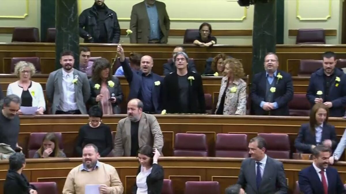 Diputados y senadores del PDeCAT y de ERC han despedido con los sones de la canción "Grândola, Vila Morena" al presidente de la República de Portugal, Marcelo Rebelo de Sousa, que ha pronunciado un discurso en el Congreso ante ambas Cámaras. Al término de la intervención del presidente portugués y luciendo claveles amarillos en demanda de libertad para los dirigentes independentistas encarcelados, los parlamentarios independentistas han comenzado a cantar esta canción, símbolo de la Revolución de los Claveles, que puso fin a la dictadura en Portugal en 1974.