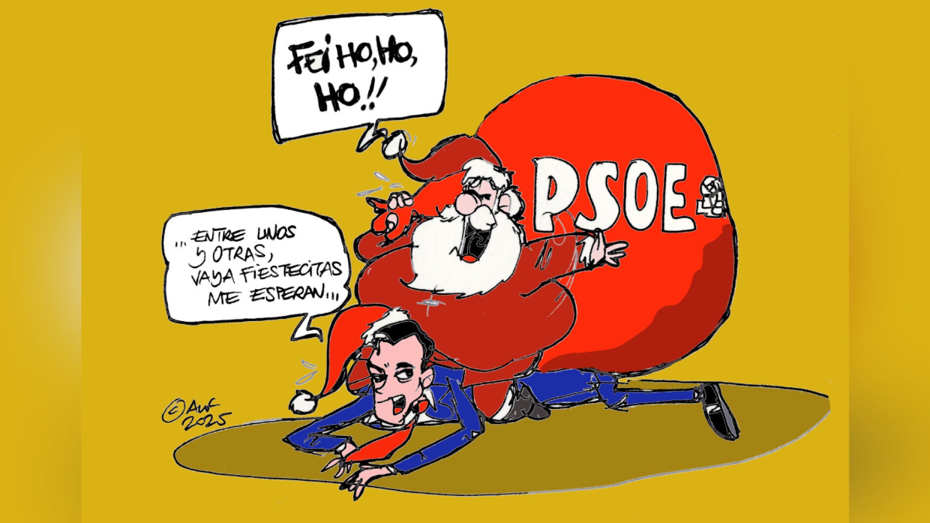 Pedro Sánchez es 'aplastado' por Papá Noel, en la viñeta gráfica de Alfredo Boto