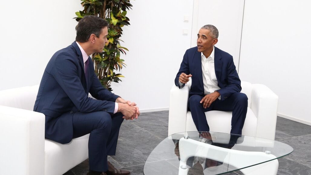 El presidente del Gobierno, Pedro Sánchez, y el expresidente estadounidense Barack Obama han mantenido un breve encuentro en Sevilla en el que han intercambiado ideas sobre la lucha contra el cambio climático y los retos que conlleva la migración.