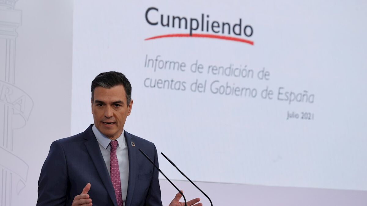 Como viene siendo habitual antes del parón veraniego Pedro Sánchez ha hecho este jueves balance del curso político. El presidente del Gobierno ha presentado desde el Palacio de la Moncloa un informe sobre el cumplimiento durante el primer semestre del año de los compromisos contraídos en su investidura y ha hecho un análisis de los acontecimientos políticos y económicos de los últimos meses. También ha expuesto las expectativas del Ejecutivo hasta fin de año.