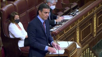 De esta forma ha respondido Sánchez a Abascal, quien ha anunciado durante el Pleno del Congreso sobre el fondo europeo que su partido presentará esa moción en septiembre y ha llamado a apoyarla a todos los partidos que quieran evitar que España caiga "en la ruina, la muerte y la opresión". Tras augurar una legislatura "larga y fructífera", el jefe del ejecutivo ha reconocido que Vox tiene "legitimidad" para presentar esa moción de censura contra el Gobierno, pero ha recalcado que si es "tan urgente" por qué espera a septiembre.