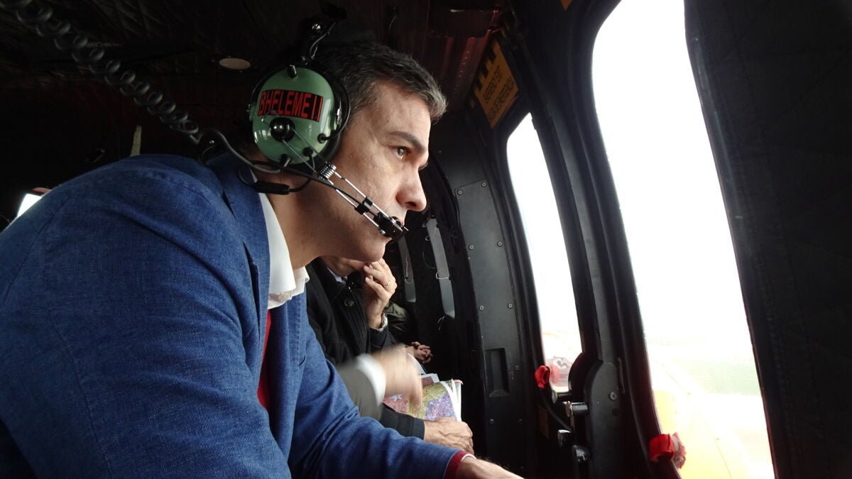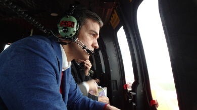 El presidente del Gobierno, Pedro Sánchez, ha sobrevolado este sábado las zonas más afectados por el paso de la borrasca Gloria en la Región de Murcia y Castellón.