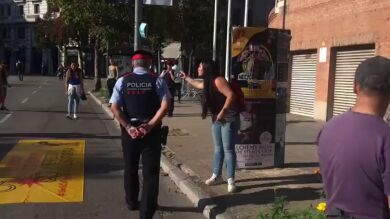 Al otro lado decenas de personas esperando hacer trámites necesarios para su vida profesional o personal que no podían acceder a la subdelegación del gobierno en Girona. En un momento dado una de las mujeres afectadas les llama la atención y otros la siguen para expresar su hartazgo con la situación.