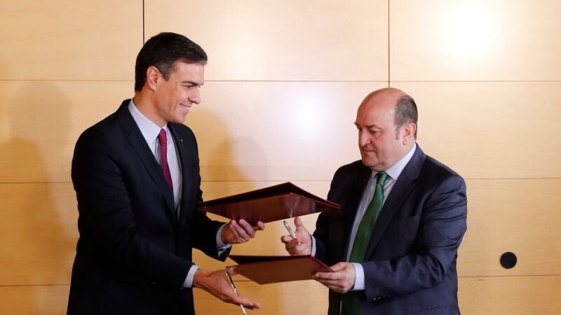 El PNV ha llegado a un acuerdo con el PSOE para apoyar la investidura. A las 13:00 horas, Pedro Sánchez y Andoni Ortuzar firmarán el pacto en el Congreso.