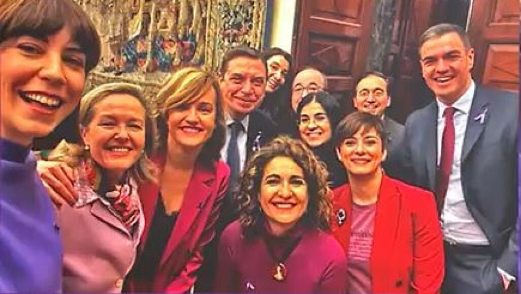 Diez miembros del Gobierno aparecen en una fotografía que la portavoz del Gobierno, Isabel Rodríguez, ha publicado por el 8M tras el tenso debate de la reforma de la ley del 'solo sí es sí'.
