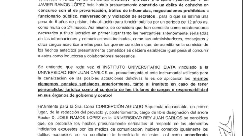 El Grupo Parlamentario Podemos ha registrado una denuncia ante la Fiscalía de Móstoles contra el rector de la Universidad Rey Juan Carlos (URJC), Javier Ramos, por presuntos delitos de tráfico de influencias, cohecho y prevaricación por el convenio para la cesión del hangar de la institución de Fuenlabrada con la compañía European Airline Training Center 2015 (EATC).
