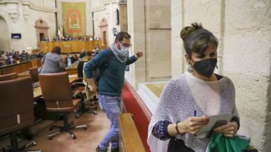 La Mesa del Parlamento de Andalucíaha instado a los diez diputados no adscritos, procedentes tanto de Adelante Andalucía como de Vox, a retirar los símbolos que han colocado en el espacio común que comparten en la Cámara regional, que incluyen desde una bandera LGTB a otra de Falange Española de las JONS.