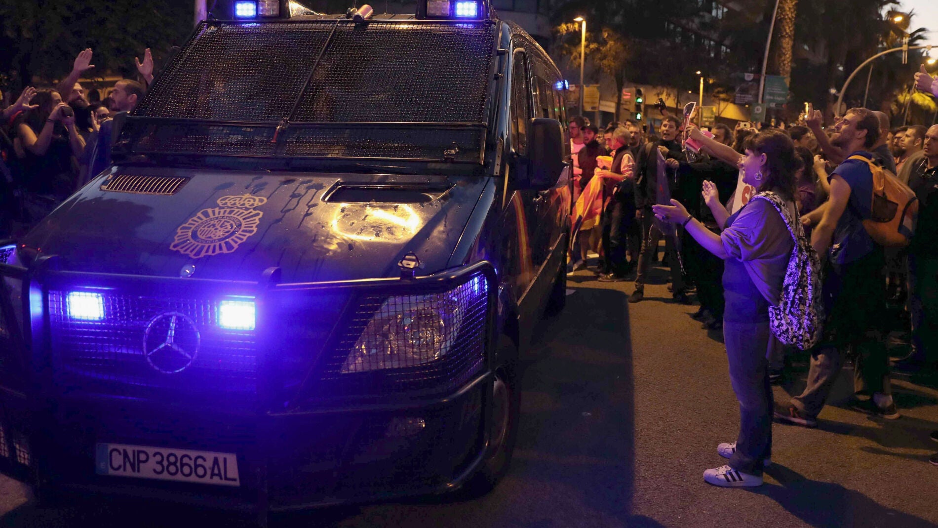 Hacia las 20.00 horas, la docena de furgones antidisturbios de la Policía Nacional se han retirado sin practicar ninguna intervención en la sede de la formación, entre abucheos y golpes de los concentrados a los vehículos policiales.