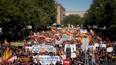 La protesta se ha iniciado en la plaza Urquinaona de Barcelona y ha empezado a bajar por Via Laietana, encabezada por una pancarta con el lema "Equiparación Ya. Justicia salarial", mientras los agentes y sus familiares llevan banderas españolas y de otras autonomías, entre ellas catalanas.