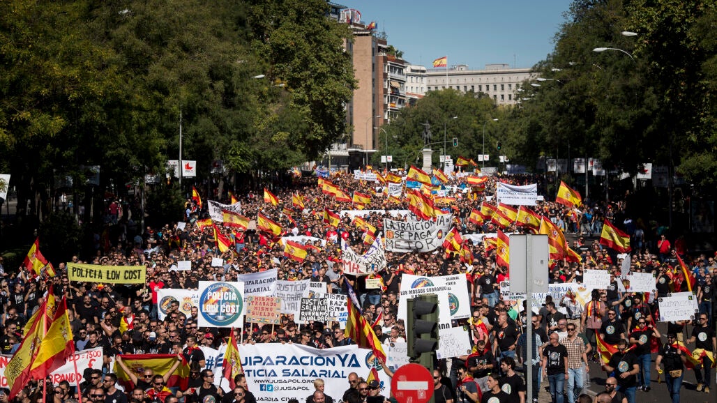 Miles de policías y guardias civiles se manifiestan en Barcelona reclamando la equiparación salarial con los Mossos y la Ertzaintza