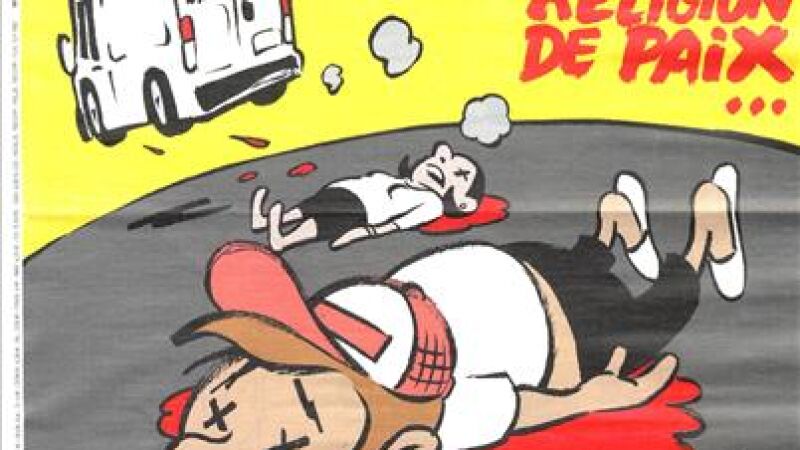 La revista satírica francesa ha publicado una portada en la que se pueden ver dos personas en el suelo con manchas de sangre y una furgoneta que les ha atropellado, lo que recuerda a lo ocurrido en Las Ramblas,junto al mensaje 'Islam religión de paz... eterna".