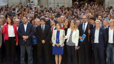 Puigdemont ha mostrado su apoyo a los alcaldes investigados por la Fiscalía por apoyar el referéndum del 1 de octubre, que ha sido suspendido por el Tribunal Constitucional, en un acto celebrado en la galería gótica del Palau de la Generalitat. El presidente de la Generalitat, ha señalado en su discurso que en el panorama político español hay personas como el presidente del Gobierno, Mariano Rajoy, que "nos amenazan", y otros que "se lo miran de lado" -el proceso soberanista- o "siguen negando lo evidente", en alusión velada al PSOE aunque sin citarlo explícitamente.