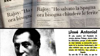 Puigdemont destaca el titular que ha dejado Rajoy en una entrevista en la que dice haber salvado a España y lo equipara con un texto de la Falange que incluye la imagen de Primo de Rivera.
