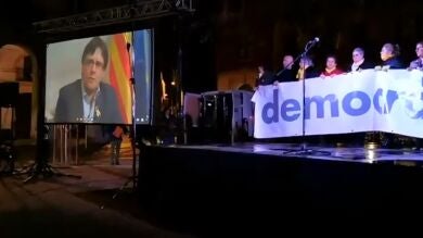 "Saldremos adelante, de hecho ya lo estamos haciendo", ha sido uno de los mensajes optimistas que Carles Puigdemont ha trasladado a los simpatizantes independentistas, a los que ha manifestado: "Espero que podamos celebrar la república".