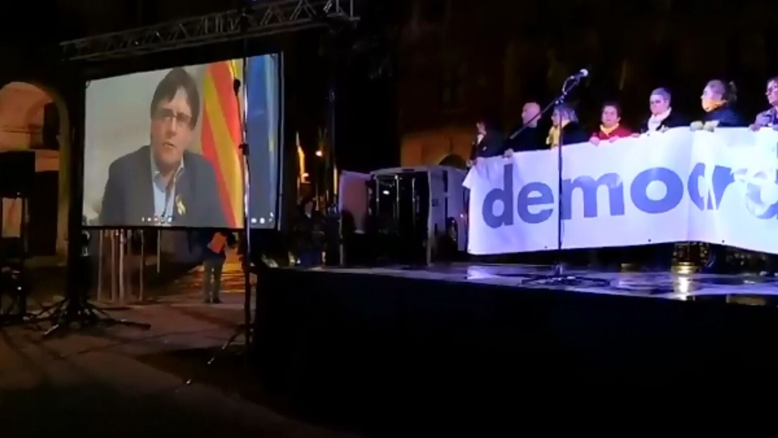 Puigdemont interviene en una concentración en Girona asegurando que le "llueven las ofertas para ir a otros lugares a explicar" la situación catalana