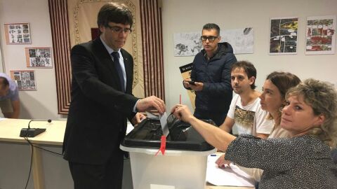 El presidente de la Generalitat, Carles Puigdemont, ha acusado este domingo al Estado de utilizar una "brutalidad policial absolutamente injustificada" para intentar impedir el referéndum del 1-O. Puigdemont ha llegado sobre las 11.15 horas al pabellón municipal de Sant Julià de Ramis, donde estaba previsto que votara a las 9.30, lo cual ha impedido la Guardia Civil tras requisar las urnas.