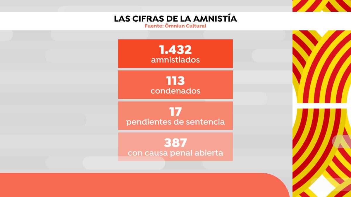 ERC ya ha conseguido un acuerdo con el PSOE. En él se recoge la amnistía para los CDR y 'tsunami democratic'. La amnistía 'total' que se estaría negociando quedaría de la siguiente forma, a la espera del acuerdo oficial y de que se conozcan todos los detalles pactados por PSOE y Junts. 1.432 amnistiados, de los que 113 ya estarían condenados, 17 estarían pendientes de sentencia y 387 tienen una causa penal abierta, según 'Òmnium cultural'.