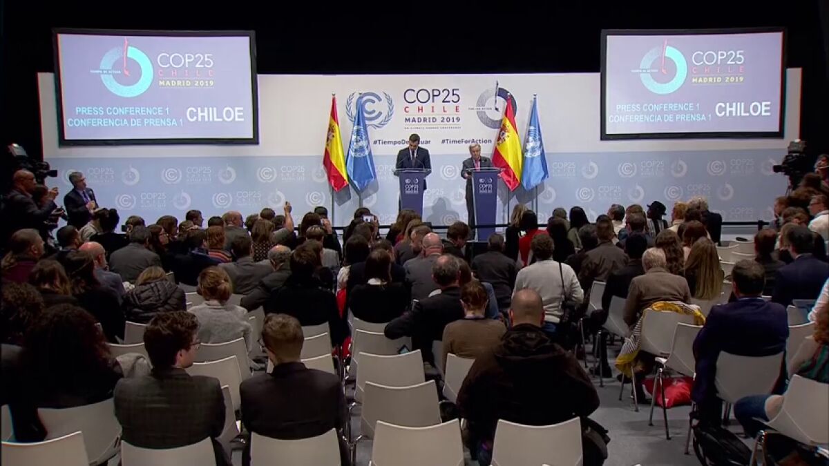 Pedro Sánchez y el secretario general de la ONU, el portugués Antonio Guterres, han compartido una rueda de prensa para hablar del inicio de la Cumbre del Clima. Los periodistas españoles esperaban con interés esta comparecencia ante la falta de declaraciones de Pedro Sánchez sobre las negociaciones para la investidura. Pero ha sido una periodista chilena la que ha afeado el método elegido para organizar esta conferencia de prensa internacional.