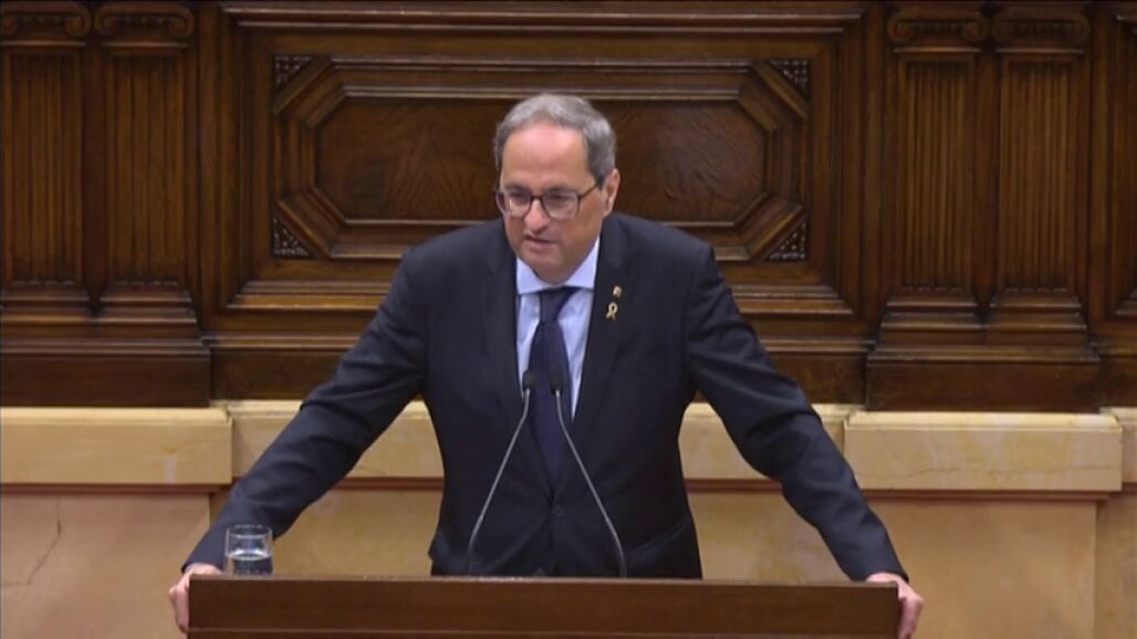 Pleno en el Parlamento de Cataluña tras la tensión de los tres últimos días como reacción a la sentencia del Tribunal Supremo sobre el 'procés'. Por ahí ha comenzado su comparecencia el presidente de la Generalitat, Quim Torra: "El juicio farsa fue una escenificación de una sentencia que ya estaba escrita. Hay que ser valientes en democracia".