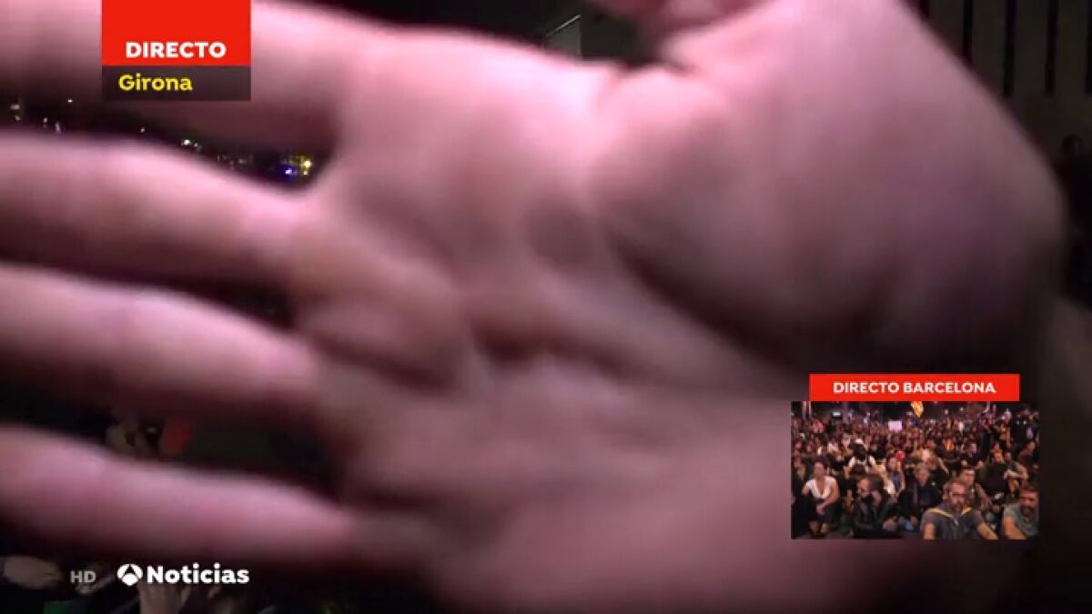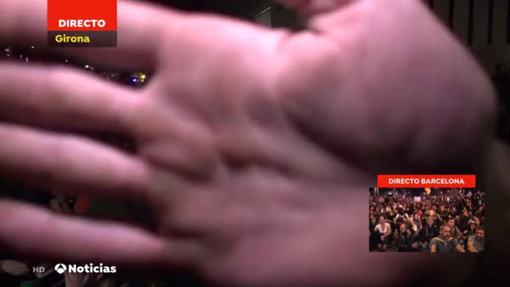Desde el plató daban paso a Arnau cuando un radical se ha colado en el plano del cámara y ha tratado de boicotear su trabajo mientras que los presentes lo jaleaban al grito de "prensa española, manipuladora".
