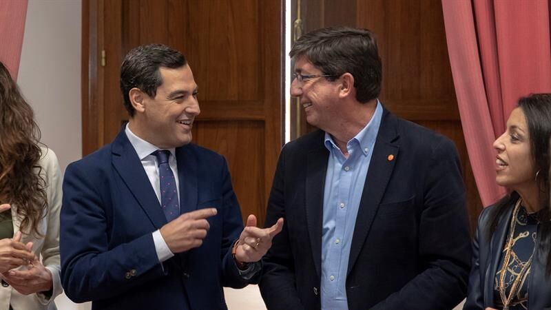 Ha asegurado que las negociaciones "van por buen camino" y esperan tener el acuerdo de gobierno cerrado en breve. Marín ha subrayado que el acuerdo es únicamente de un Gobierno de PP y Cs y que, cuando se cierre, valorarán "qué fórmulas" utilizan para presentárselo al resto de fuerzas políticas del Parlamento. A falta de conocer cómo se concreta la estructura de gobierno, se baraja que haya entre diez y doce consejerías, con un previsible reparto del 50 por ciento, la Presidencia para Juanma Moreno y la Vicepresidencia para Juan Marín, según fuentes de la negociación.