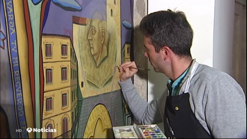 Los últimos vestigios de Franco van despareciendo. En el Salón de Plenos del Ayuntamiento de Salamanca un restaurador trabaja estos días para tapar un retrato del dictador que formaba parte de una pintura mural. Se cumple, con ello, una sentencia del Tribunal Supremo.