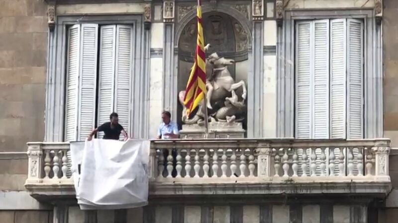 Retiran la pancarta de apoyo a los presos de la fachada de la Generalitat