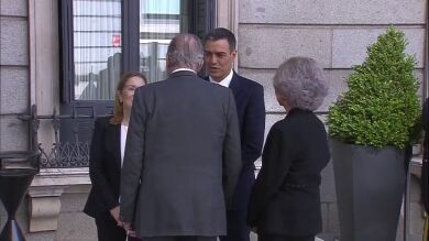 Los Reyes eméritos han sido recibidos por Pedro Sánchez y Ana Pastor. Una vez dentro han dado el pésame a la viuda y al resto de familiares y allegados más próximos a la familia.