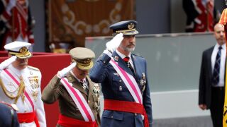 Los Reyes Felipe VI y Letizia presiden en Logroño el acto central institucional del Día de las Fuerzas Armadas, que cuenta con la participación de 2.678 militares y guardias civiles, 54 aviones y helicópteros y un total de 147 vehículos, incluidos carros de combate 'Leopardo'.