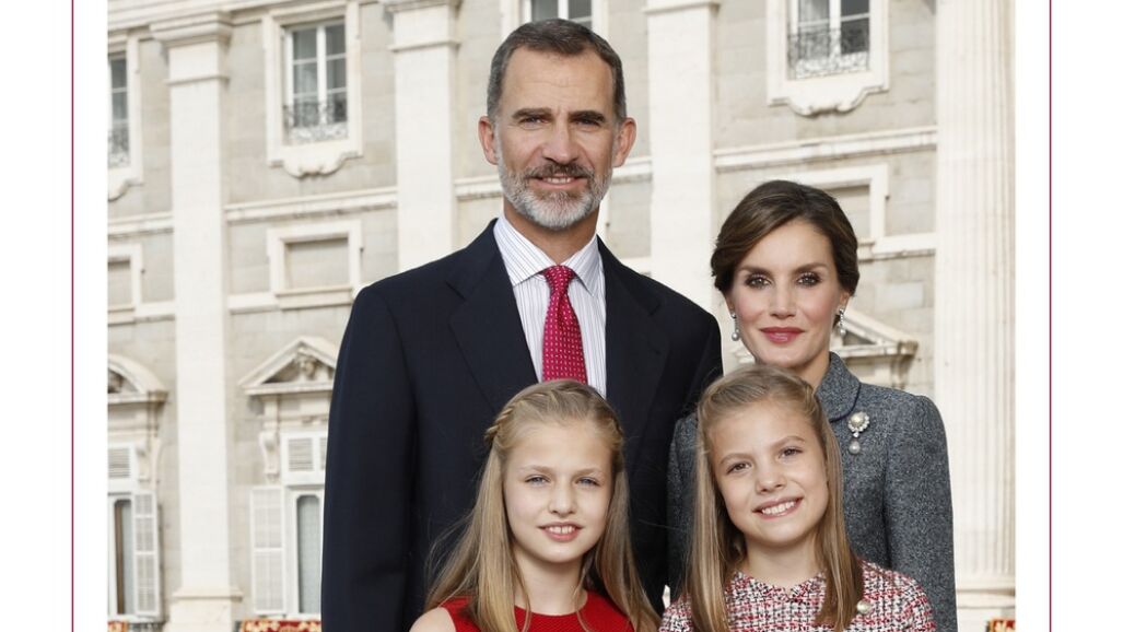Los Reyes han elegido para expresar sus mejores deseos ante la Navidad y el Año Nuevo una imagen tomada en el Palacio Real el 12 de octubre, en la que aparecen sonrientes con sus hijas, la Princesa Leonor y la infanta Sofía, antes de presidir la recepción oficial por el día de la Fiesta Nacional.