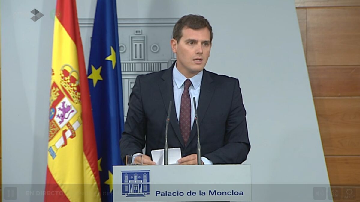 Albert Rivera ha comparecido en el Palacio de la Moncloa tras reunirse con el presidente de Gobierno, Mariano Rajoy. "El Estado está actuando y va a actuar para que no se declare la independencia de Cataluña", ha apuntado el líder de Ciudadanos.